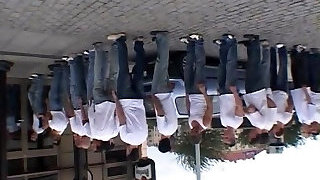 Slutty brunette porked hard by 30 studs in this gangbang film