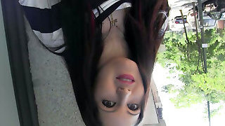 Mega big-titted honest haired babe gives a head to her dude outdoors