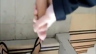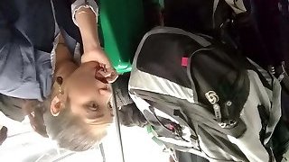 Shameless bitch is gargling me off on the stairs and she's so merciless