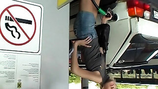 Slut at the gas station douche has gloryhole sex