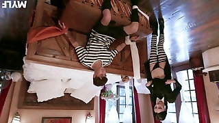 Horny Lesbian Group Babes In Yoga Pummel Orgy