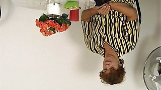 This granny gets the cock rock-hard just by showing her huge natural fun bags
