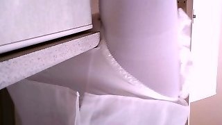 Peeing in her panties and hairy snatch
