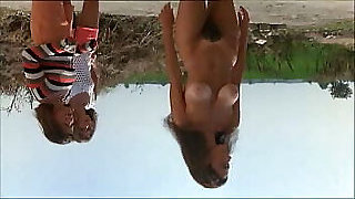 Cute teen chick Anna Netrebko swims naked with her Gf