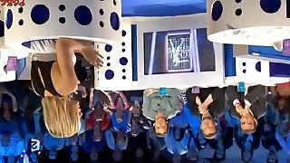 Local celebrity panties up microskirt in a live show
