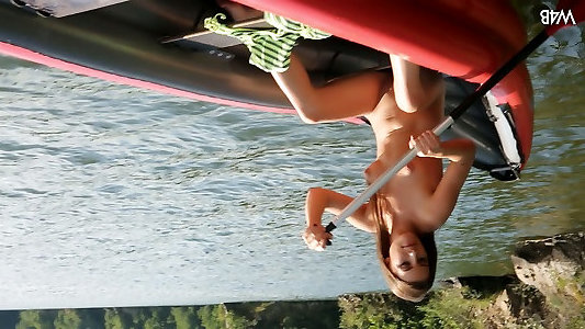 Solo gal Sindy Black milks her shaved cunt on a boat