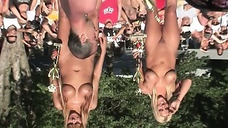 2 hot nudists are topless and liking the sun while someone is taking stunning nudist pics of them