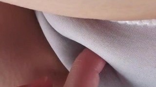 Tasty looking blond amateur gets her fresh pussy fingered hard through panties