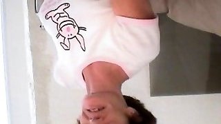 Wooly brunette Beryl Aspen strips while she cleans to show off her huge caboose