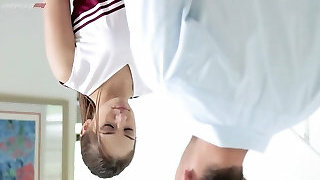 Super-cute cheerleader girl Sara Luvv sucks big cock and gets screwed hard