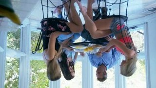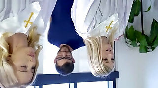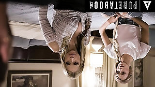 Horny boy fucks stepsister Alex More and her sex-hungry girlfriend