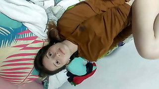 I quickly fuck my girlfriend's taut little vagina in her parents' room