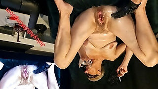 bizarre insertion pussy stretching by fake pussy and fist fisting homemade loud ejaculations