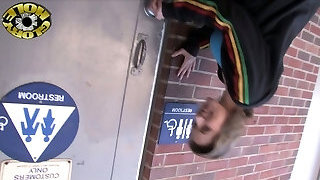 Interracial Gloryhole Act with a Cumshot in a Public Bathroom