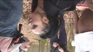 British Goth girl with yam-sized tit goes Dogging in the woods