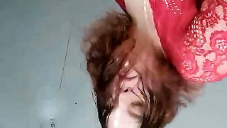 Busty teenager Sarah in wet pantyhose