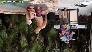 Ash-blonde babe Bailey Brooke pounded doggy style at the pool