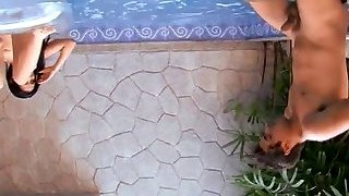 Sweaty MILF lets this horny plower poke her poolside, age difference be damned