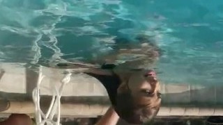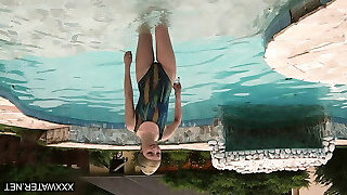 Lovely amateur gamine hottie is excellent at underwater solo show