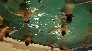 Cute girls masturbate in public naturist resorts with the underwater jet while other young couples screw!