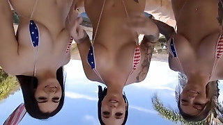 Outdoor lezzie three way by the pool - Aidra Fox and Adria Rae