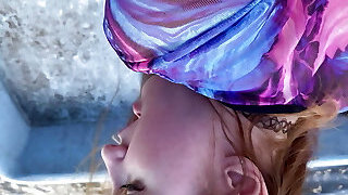 Teen With Tears Up Pays Rent By Sucking Cock - Deep Throat, Guzzles All Of It. Lavender Joy
