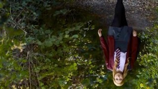 School girl bone walk in the woods.