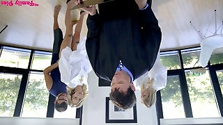 Sinful honey Haley Reed goes wild on a hard pole in front of priest