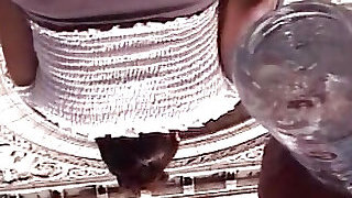 In a sundress sans panties.The wife is reading a book.Wife's bushy stretchy cunt.